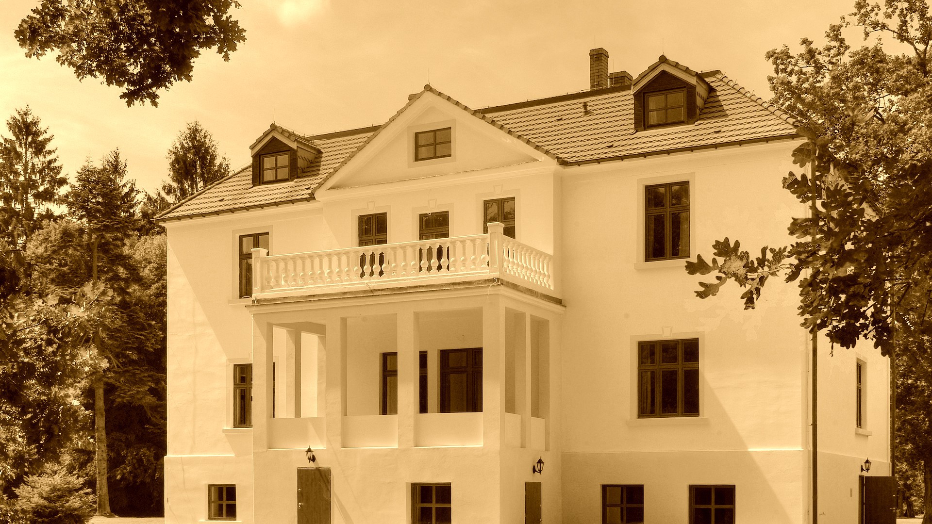 Główny budynek – pałacyk myśliwski – pochodzi z końcówki XIX wieku. Wybudowany został przez przemysłowca pochodzącego z Berlina – właściciela wytwórni kawy oraz sieci kawiarni w całych Niemczech. Gośćmi organizowanych przez niego licznych spotkań myśliwskich bywali przedstawiciele świata polityki, sztuki i biznesu. Według źródeł, dość często odbywały się tam również wesela i inne imprezy okolicznościowe wielu znanych osobistości.